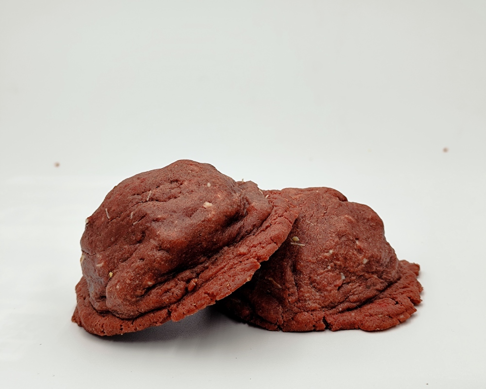 Las cookies red velvet de El Puesto de Vicente son pura tentación en cada mordisco. Con su característico color rojo intenso, estas galletas combinan el sabor suave del cacao con un toque de vainilla y una textura que se deshace en la boca. Como toque final irresistible: chips de chocolate blanco que realzan su dulzura sin empalagar.